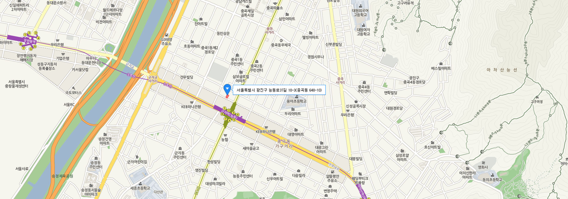 지하철 7호선 군자역 2번출구 도보 3분 거리에 위치해 있습니다.